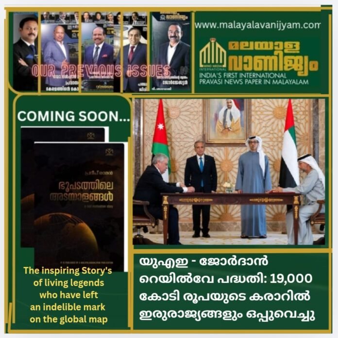 യുഎഇ – ജോർദാൻ റെയിൽവേ പദ്ധതി: 19,000 കോടി രൂപയുടെ കരാറിൽ ഇരുരാജ്യങ്ങളും ഒപ്പുവെച്ചു