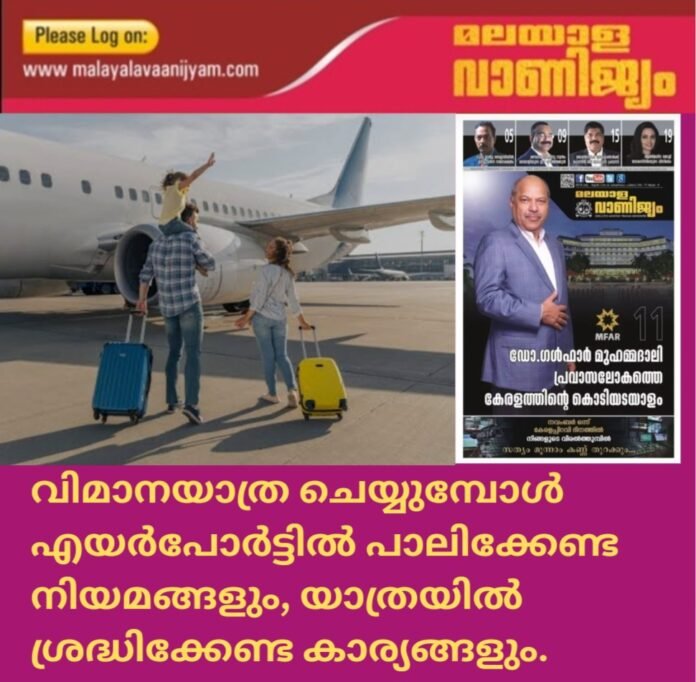 വിമാനയാത്ര ചെയ്യുമ്പോൾ എയർപോർട്ടിൽ പാലിക്കേണ്ട നിയമങ്ങളും, യാത്രയിൽ ശ്രദ്ധിക്കേണ്ട കാര്യങ്ങളും