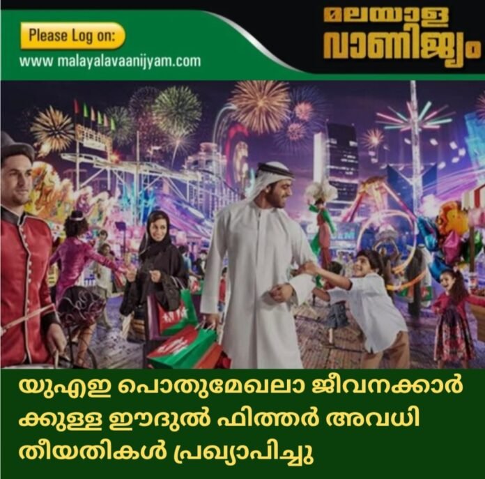 യുഎഇ പൊതുമേഖലാ ജീവനക്കാർ ക്കുള്ള ഈദുൽ ഫിത്തർ അവധി തീയതികൾ പ്രഖ്യാപിച്ചു