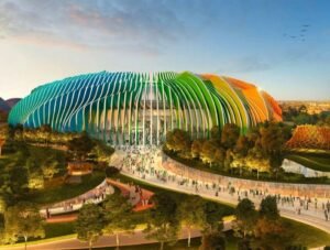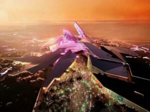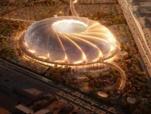 NEOM സ്റ്റേഡിയം സൗദിഅറേബ്യയിലെഅറേബ്യയിലെ ഭാവി നഗരമായ ദി ലൈനിനുള്ളിൽ സ്ഥിതി ചെയ്യുന്ന ദി ലൈനിലെ NEOM സ്റ്റേഡിയം ആഗോളതലത്തിലെ ഏറ്റവും മികച്ച കായിക വേദികളിലൊ ന്നായി മാറും. ഗ്രൗണ്ടിൽ നിന്ന് 350 മീറ്ററിലധികം ഉയരത്തിൽ സ്ഥിതി ചെയ്യുന്ന സ്റ്റേഡിയം, നഗരത്തിൻ്റെ രൂപകല്പനയുമായിപരിധികളില്ലാതെ സംയോജിപ്പിച്ചിരിക്കുന്ന മേൽക്കൂരയുള്ള അതിമനോ ഹരമായ  മനോഹരമായ കാഴ്ചകൾ പ്രദാനം ചെയ്യും. 45,000-ലധികം ശേഷിയുള്ള ഇത് ഇ-ടിക്കറ്റ് ഗേറ്റുകളും 4K അൾട്രാ എച്ച്ഡി ബ്രോഡ്കാസ്റ്റിംഗും ഉൾപ്പെടെയുള്ള അത്യാധുനിക സാങ്കേതികവിദ്യ ഉപയോഗിക്കും, ഇത് കളിക്കാർക്കും കാണികൾക്കുംബ്രോഡ്കാസ്റ്റർമാർക്കും ഒരുപോലെ അനുഭവം വർദ്ധിപ്പിക്കും. നിയോം സ്റ്റേഡിയം പൂർണമായും കാറ്റ്, സൗരോർജ്ജ സ്രോതസ്സുകളിൽ നിന്നുള്ള പുനരുപയോഗ ഊർജം ഉപയോഗിച്ചായിരിക്കും പ്രവർത്തിക്കുക. വൈദ്യുത ഗതാഗതവും നടപ്പാത പ്രോത്സാഹിപ്പിക്കുന്നതുമായ ഒരു സുസ്ഥിര കായിക കേന്ദ്രീകൃത സമൂഹത്തിൻ്റെ ഭാഗമായിരിക്കും ഇത്. ഈ അത്യാധുനിക വേദി പുരുഷന്മാരുടെയും സ്ത്രീകളുടെയും പ്രൊഫഷണൽ ഫുട്ബോൾ ക്ലബ്ബുകൾക്ക് ആതിഥേയത്വം വഹിക്കും, ഇത് സ്പോർട്സ്, ആരാധകർ, പ്രധാനപ്പെട്ട ഇവൻ്റുകൾ എന്നിവയുടെ കേന്ദ്രമായി വർത്തിക്കുകയും ലൈനിൻ്റെ ഊർജ്ജസ്വലമായ ആവാസവ്യവസ്ഥയിലേക്ക് സംഭാവന നൽകുകയും ചെയ്യും. ഖിദ്ദിയ കോസ്റ്റ് സ്റ്റേഡിയം:പോപ്പുലസ് രൂപകല്പന ചെയ്ത ഖിദ്ദിയ കോസ്റ്റ് സ്റ്റേഡിയം 45,000-ത്തിലധികം ആളുകളെ ഉൾക്കൊള്ളുന്ന ഒരു ദൃശ്യ-വിസ്മയ വേദിയാകും. അതിൻ്റെ രൂപകൽപ്പന ആളുകൾ, വെള്ളം, ഊർജ്ജം, ദ്രവ്യം എന്നിവ തമ്മിലുള്ള ചലനാത്മക ബന്ധത്തെ പ്രതീകപ്പെടുത്തുന്നു, “മെക്സിക്കൻ തരംഗത്തിൻ്റെ” അലകളുടെ പ്രഭാവത്തിൽ നിന്ന് പ്രചോദനം ഉൾക്കൊണ്ട് അലങ്കരിച്ച രൂപങ്ങളും ഊർജ്ജസ്വലമായ വർണ്ണ പാലറ്റും ഉൾക്കൊള്ളുന്നു. ജിദ്ദയുടെ വടക്കൻ തീരത്ത് ചെങ്കടലിനോട് ചേർന്ന് സ്ഥിതി ചെയ്യുന്ന സ്റ്റേഡിയം ഖിദ്ദിയ കോസ്റ്റ് ഡെവലപ്‌മെൻ്റിൻ്റെ ഹൃദയഭാഗത്തായിരിക്കും, ചുറ്റും മറ്റ് കായിക സൗകര്യങ്ങൾ, ഹോട്ടലുകൾ, 1 കിലോമീറ്റർ ചുറ്റളവിൽ സാമുദായിക ഇടങ്ങൾ എന്നിവയുണ്ട്. 2034 ലോകകപ്പിന് ശേഷം സ്റ്റേഡിയം വിവിധോദ്ദേശ്യ വിനോദ വേദിയായി മാറും. മുകളിലെ നിര നീക്കം ചെയ്യുന്നതിലൂടെ അതിൻ്റെ ശേഷി 25,000 ആയി കുറയും. കർട്ടനുകളും പാർട്ടീഷനുകളും പോലെയുള്ള ഫ്ലെക്സിബിൾ ഫീച്ചറുകൾ ഇതിൽ ഫീച്ചർ ചെയ്യും, ഇത് എസ്പോർട്സ്, എക്സിബിഷനുകൾ, കച്ചേരികൾ, കോൺഫറൻസുകൾ, പ്രധാന കായിക ടൂർണമെൻ്റുകൾ എന്നിവയുൾപ്പെടെ വിപുലമായ പരിപാടികൾ സംഘടിപ്പിക്കാൻ അനുവദിക്കുന്നു.                     പ്രിൻസ് മുഹമ്മദ് ബിൻ സൽമാൻ സ്റ്റേഡിയംപോപ്പുലസ് രൂപകല്പന ചെയ്ത പ്രിൻസ് മുഹമ്മദ് ബിൻ സൽമാൻ സ്റ്റേഡിയം 46,000-ത്തിലധികം പേർക്ക