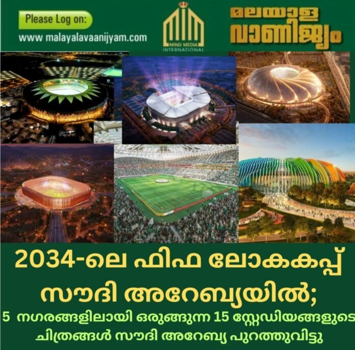 2034-ലെ ഫിഫ ലോകകപ്പ് സൗദി അറേബ്യയിൽ; 5 നഗരങ്ങളിലായി ഒരുങ്ങുന്ന 15 സ്റ്റേഡിയങ്ങളുടെ ചിത്രങ്ങൾ അറേബ്യ പുറത്തുവിട്ടു