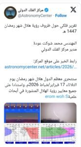 ഇസ്ലാമിക് ഹിജ്രി കലണ്ടർ പ്രകാരം മാസപ്പിറവി ദൃശ്യമാകുന്നതിനനുസരിച്ചാണ് പുതിയ മാസം ആരംഭിക്കുന്നത്. എന്നാൽ ഫെബ്രുവരി 17 ചൊവ്വാഴ്ച (ശഅബാൻ 29) അറബ് മേഖലയിൽ ചന്ദ്രക്കല ദൃശ്യമാകുന്നത് അസാധ്യമാണെന്ന് അബുദാബി ആസ്ഥാനമായുള്ള ജ്യോതിശാസ്ത്ര കേന്ദ്രം വ്യക്തമാക്കി.